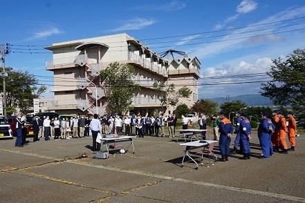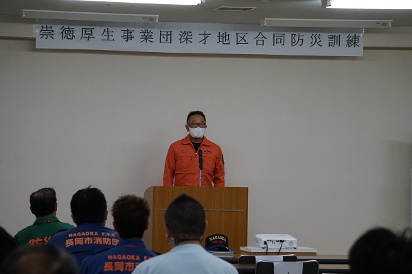 深才地区の4法人8施設と地域住民、地域消防団および長岡市消防本部が参加して、